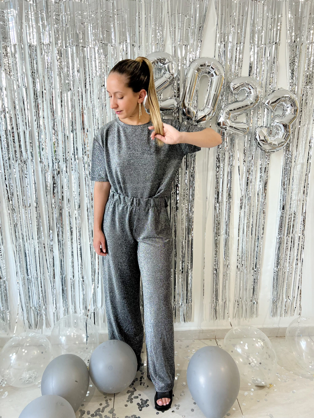 Pantalón de lurex ideal para combinar con la remera lurex. Medidas : cintura 74 cm cede hasta 110 cm caderas 110 cm cede hasta 130 cm largo 100 cm.