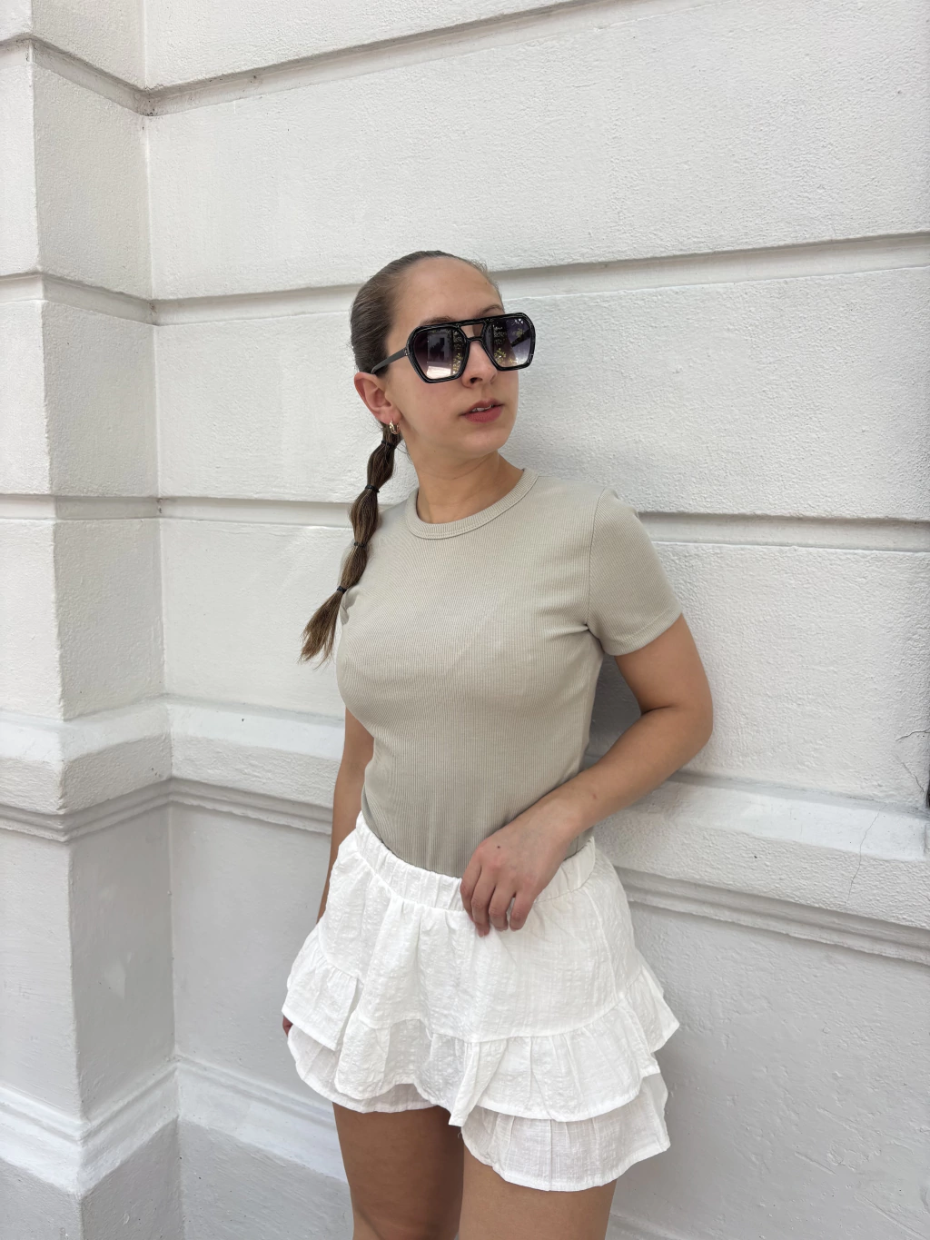 Remera de morley manga corta y sus medidas son : contorno de busto 85 cm cede hasta 100 cm largo 55 cm.